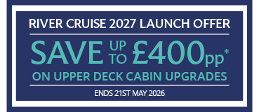 Enjoy unbeatable views of Europe's most scenic waterways with savings of up to £400pp on upgrades to upper deck cabins on our 2027 river cruise departures. Spacious rooms provide an elegant retreat from which to admire the landscapes, with panoramic windows in Deluxe Staterooms or even walk-out balconies in the top-deck suites.